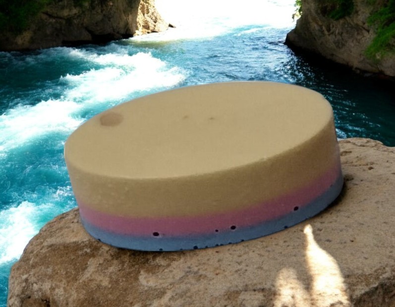 Małe mydełko owalne w trzech kolorach: na dole niebieski, pośrodku różowy, z wierzchu żółty. Pachnie wanilią i kwiatami, koi zmysły i sprawia, że kąpiel staje się odpoczynkiem po ciężkim dniu. Doskonałe na prezent świąteczny lub do podróży.
